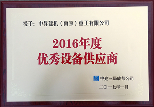中昇建機榮獲中建三局成都公司“2016年優(yōu)秀設備供應商”稱號