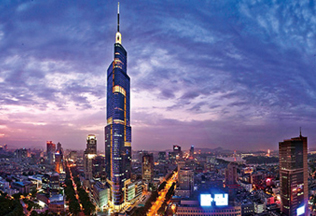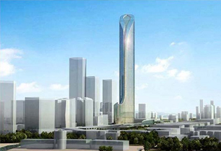 建筑主體高度438米,采用中昇建機(jī)ZSL1250(64T)及ZSL380(32T)各一臺(tái)。