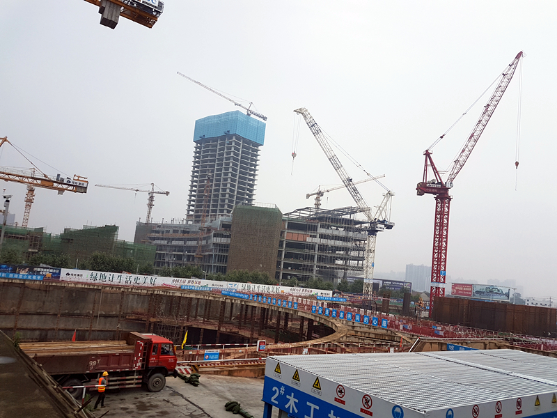 施工高度468米,采用中昇建機(jī)ZSL1250(64T),ZSL1150(64T)及ZSL750(50T)各一臺(tái)。