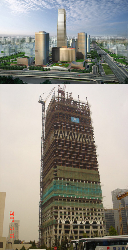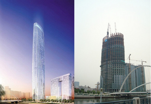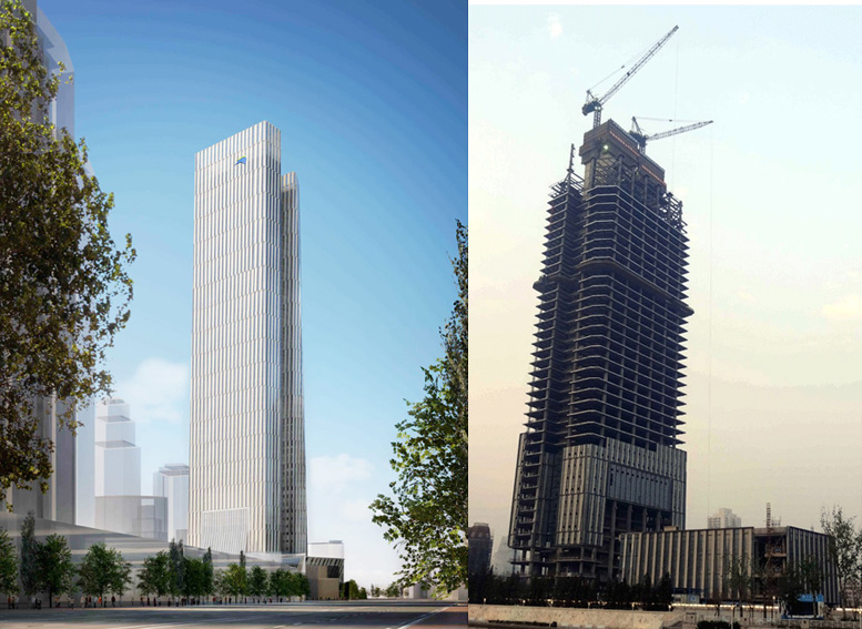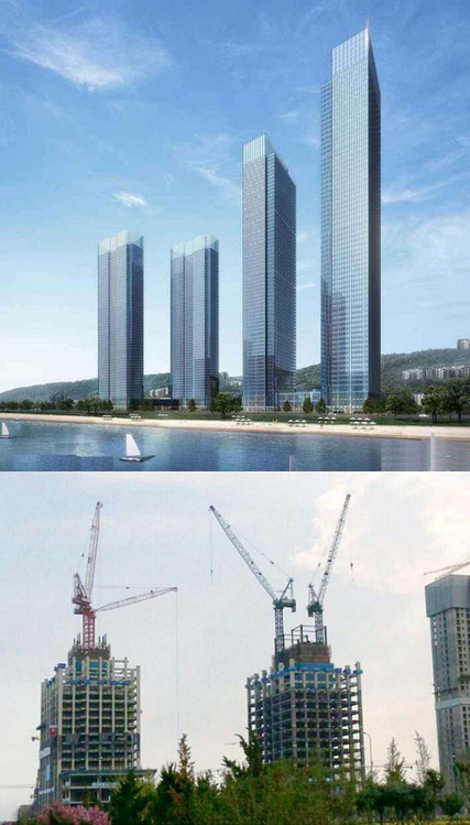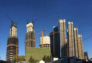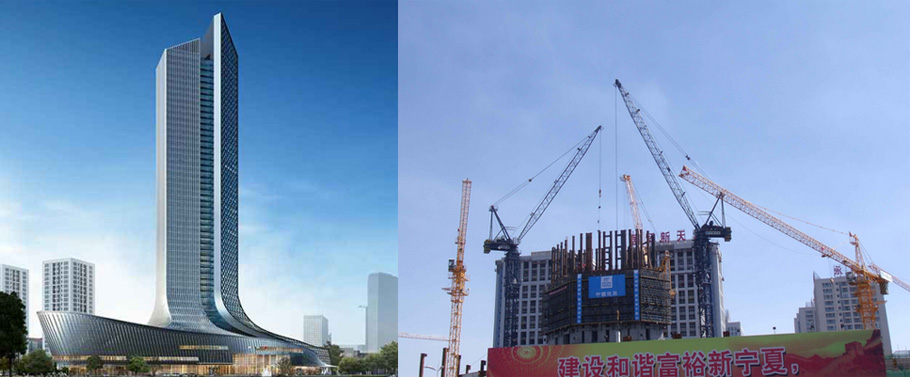 建筑高度380米,采用中昇建機(jī)ZSL3200(100T)及ZSL750(50T)各一臺(tái)。