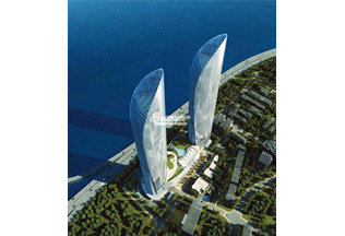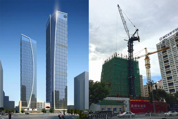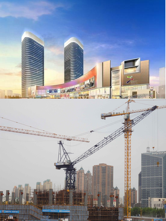 建筑高度270米,采用中昇建機(jī)ZSL750(50t)兩臺(tái)。