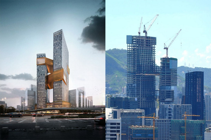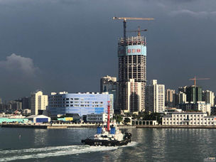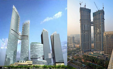 施工高度327米,采用中昇建機(jī)兩臺(tái)ZSL1250(最大吊重64t)