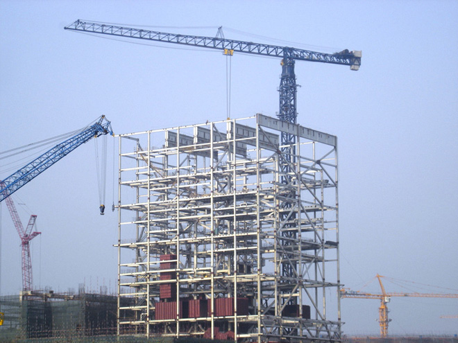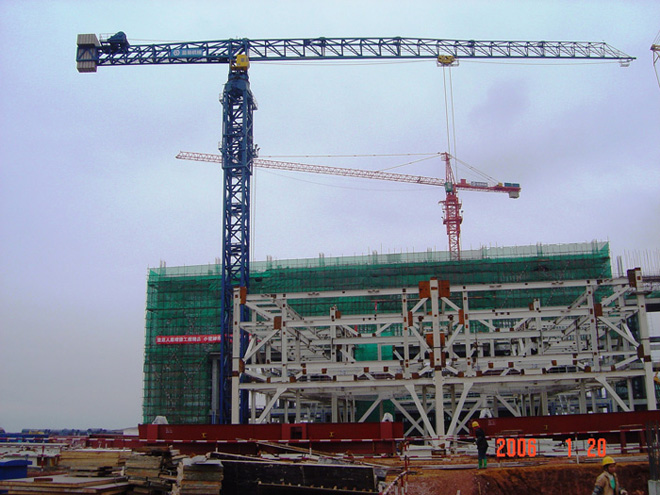 采用中昇建機(jī)ZSC2000A(ZSC70240)水平塔式起重機(jī),高度103m最大吊重25m處吊80t