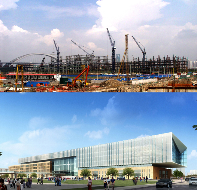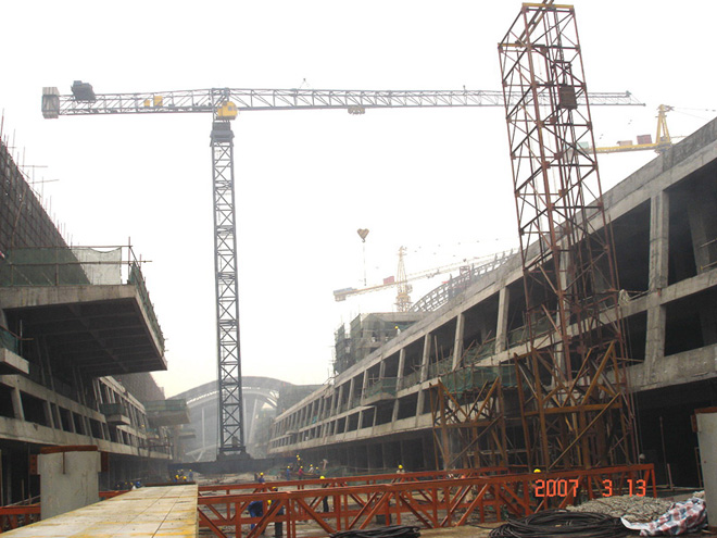 建筑面積45.8萬(wàn)㎡,采用中昇建機(jī)行走式塔機(jī)ZSC1100(50T)兩臺(tái)、ZSL1100(45T)五臺(tái)、ZSC300(16T)兩臺(tái)。