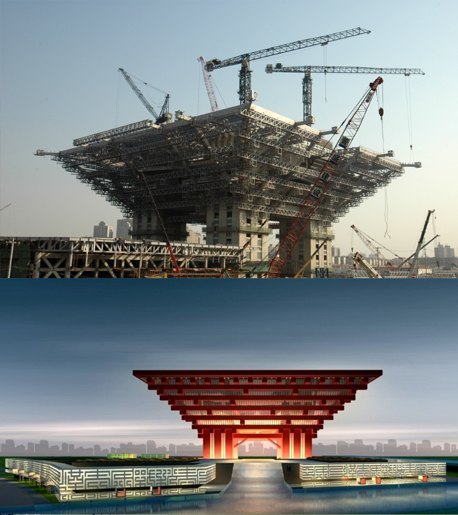 中國(guó)館建筑面積2萬(wàn)平方米,采用中昇建機(jī)ZSL50170(50T)一臺(tái)、ZSC60200(60T)二臺(tái)。地區(qū)館建筑面積3萬(wàn)平方米,采用中昇建機(jī)ZSL1000(50T)、ZSC30240(60T)、ZSL22300(50T)各一臺(tái)。