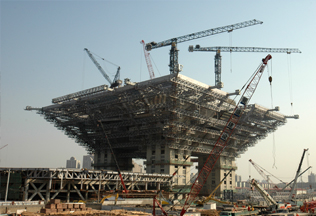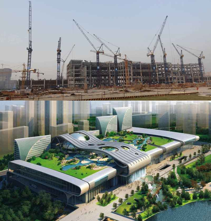 建筑面積84萬(wàn)㎡,采用中昇建機(jī)ZSL1100(45T)五臺(tái)、三ZSL1150(45T)三臺(tái)。