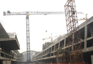 建筑面積14萬(wàn)㎡,采用中昇建機(jī)行走式動(dòng)臂塔機(jī)ZSL1000(40T)四臺(tái)。