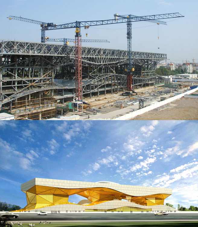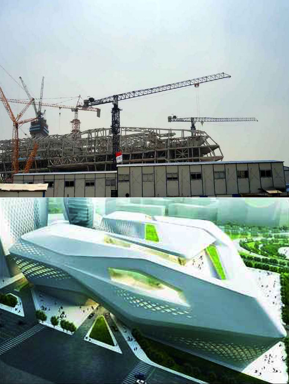 建筑面積23萬(wàn)㎡,采用中昇建機(jī)ZSL750(50T)兩臺(tái)
